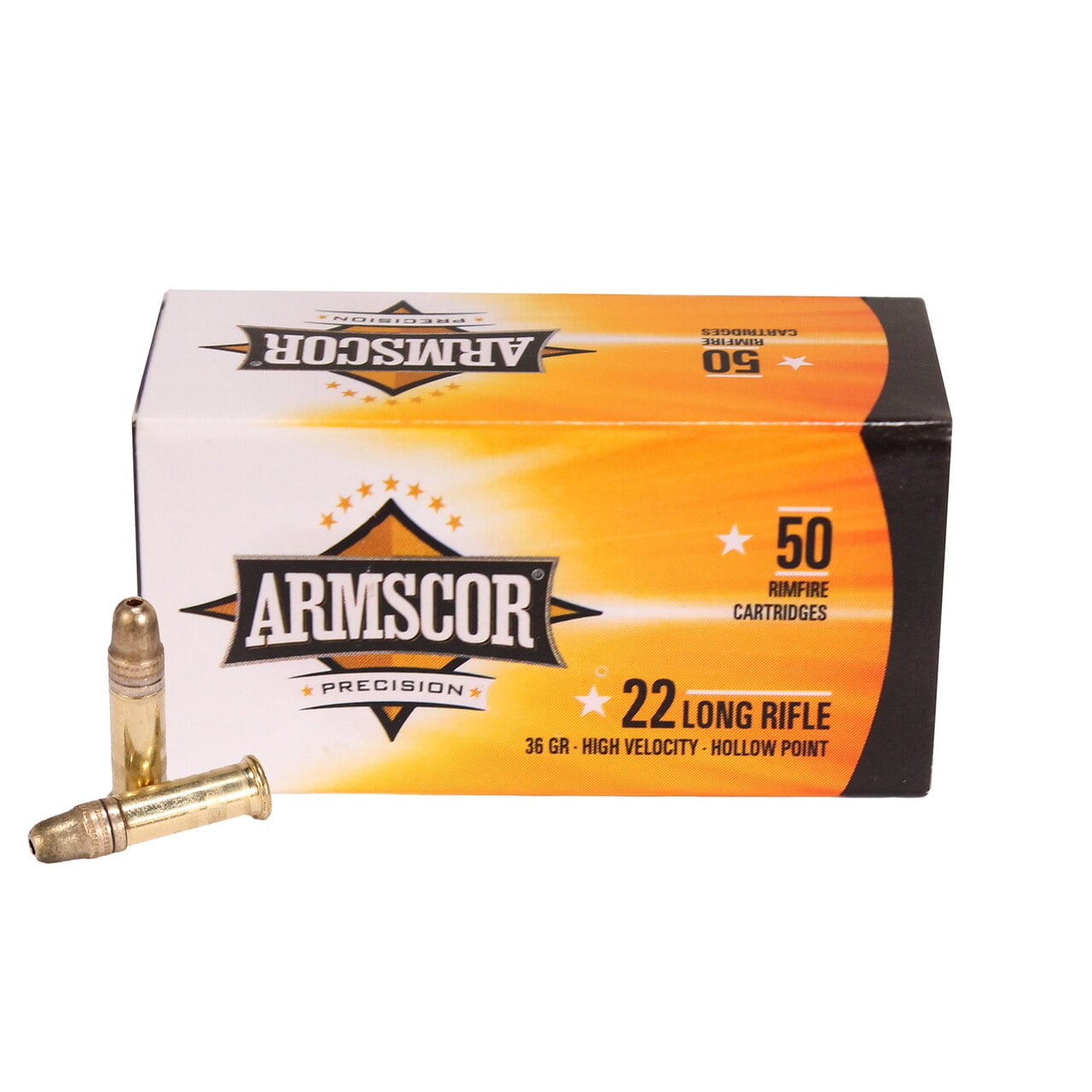 Armscor’s 22 Long Rifle ammunition has a high velocity hollow point bullet with a muzzle velocity of 1285 and muzzle energy of 132.