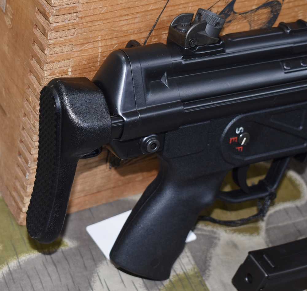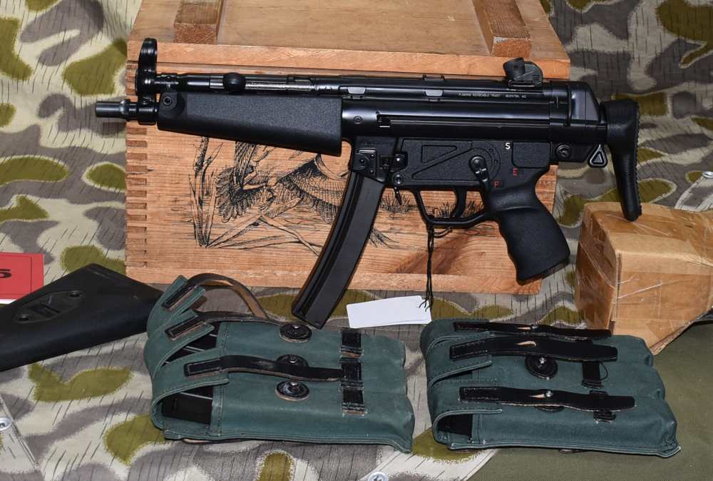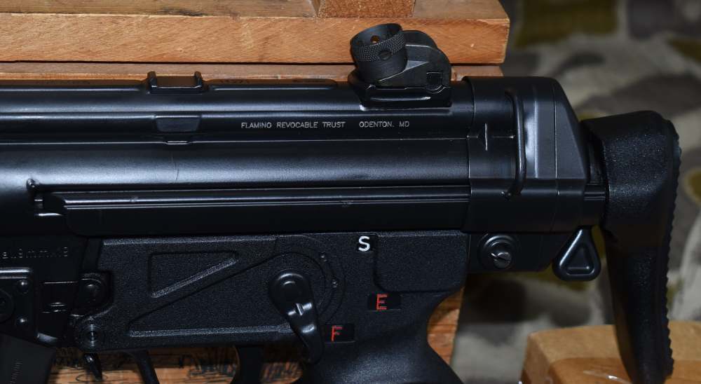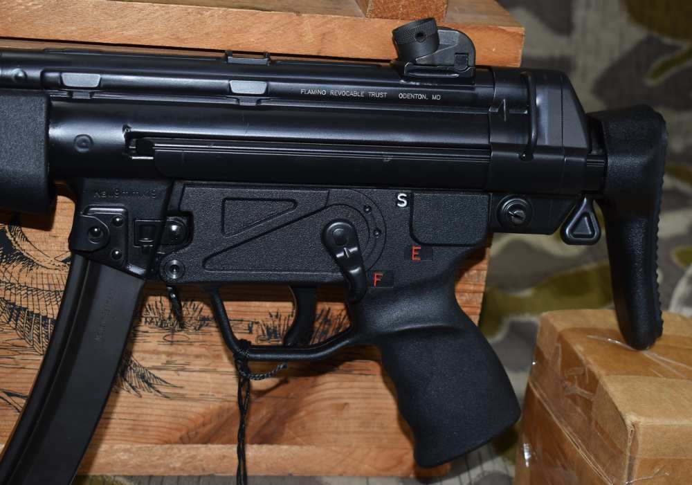 So, this is a HK MP5 SBR with a S&H registered sear. That means, two stamps, one for SBR and one for the sear. Fully transferable machine gun. Gun looks excellent in and out. Gun comes with 6 30rd mags with pouches, sling, manual and both stocks. Gun is ready to transfer and we do E-File.