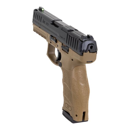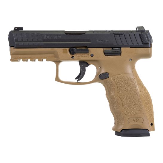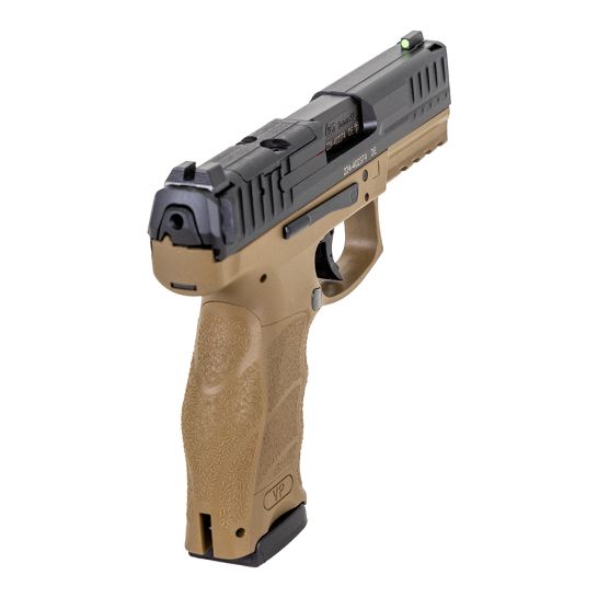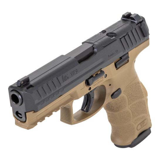 The VP9 breaks ground with its integration of a unique striker firing system with an enhanced HK trigger. The net result is a pistol with custom-fit ergonomics with trigger quality unequaled in any production striker fired handgun. It is well-suited for civilian sport shooting, security, military, and law enforcement use. The cold hammer-forged barrel made from cannon grade steel ensures long service life, as does the polygonal bore profile, which also provides a slight increase in muzzle velocity. Ergonomic, adjustable grip every detail, including the grip angle, the contour of the front strap, and the high rear saddle, were chosen to fit the human hand. And the adaptable grip frame allows you to interchange both backstraps and grip panels in 27 unique configurations to suit your hand. The VP trigger has a short, light take-up with an uninterrupted, single action type break followed by a quick positive reset. The VP9 has an extended Picatinny MIL-STD-1913 rail molded into its polymer frame and machined steel slide with a protected from corrosion finish. In addition to these features, all controls are entirely ambidextrous, including HK’s patented charging supports simple components that are mounted on each side of the rear of the slide and provide better gripping leverage for racking the slide rearward. The charging helps speed reloading and makes operating the VP9 easier for shooters with reduced hand strength.