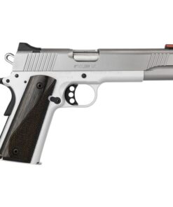 The STAINLESS LW is a limited-time special edition 1911 that combines performance and style in a sleek, lightweight design. Featuring a weight-reducing aluminum frame, this model is optimized for a comfortable shooting experience. The contrasting black small parts and sharp gray laminate grips, complete with a checkered gripping area, provide a secure and stylish hold. The white dot rear sight and red fiber optic front sight ensure fast and precise target acquisition. Equipped with a match-grade stainless steel barrel, the STAINLESS LW is comes with an 8-round magazine in .45 ACP and a 9-round magazine in 9mm, making it an excellent choice for both performance and versatility.