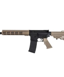 Barrel: 11.5″ Chrome Moly steel phosphate coated barrel. Chambered in 5.56 NATO, with a 1/7 twist, M4 barrel extension, and a carbine-length gas system. The barrel is finished off with a Flat Dark Earth PSA 10.5″ Lightweight Hex Full Picatinny M-Lok Free Float Rail, .750 low-profile gas block, and A2 flash hider.