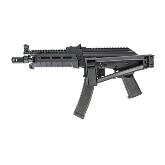 Atlantic Firearms Shop is proud to introduce the new PSA AK-V! This new product has been designed based on the Vityaz-SN Russian submachine gun, with a few modern improvements. The PSA AK-V is a blowback-operated system to ensure a smooth cycling action. Following in the footsteps of our new PSA AK-47 GF3 models, the AK-V features a forged front trunnion and bolt/carrier. Our design utilizes the Palmetto State Armory U9 35 round magazine, and also features last round bolt hold open. The PSA AK-V can only be guaranteed to function with AKV U-9 magazines.