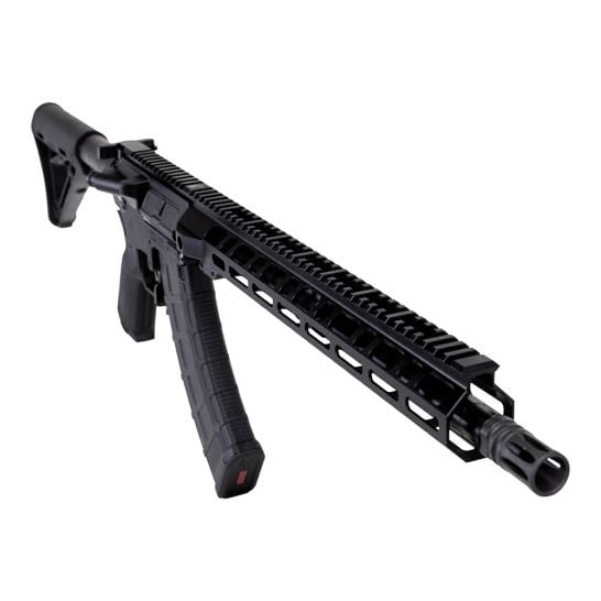 The Palmetto State Armory KS-47 G2 is based on the AR-15 and combines the modular construction, accuracy, and precision of the AR platform with the stopping power and the magazine options of the AK. The KS-47 G2 lets the AK shooter capitalize on their inventory of AK magazines and AK ammo with an AR-style platform. Unlike the AK, where the barrel is permanently pressed into the receiver, the KS-47 G2 features an AR-style modular configuration which consists of a barreled upper receiver, and a lower receiver that houses the fire control group and magazine. The modular configuration allows customers to have several different barrel configurations with one lower receiver, just by releasing two pins.