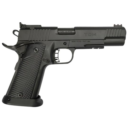 Introducing the TCM TAC Ultra FS HC, a pinnacle of precision and performance in tactical handguns. Crafted from 4140 Ordnance steel and meticulously hand-fitted, this pistol is designed to harness the power of the original Armscor .22 TCM cartridge, achieving speeds over 2000 fps with minimal recoil from its 5 inches barrel. Equipped with a double-stack Mag-well holding 17-rounds, the TCM TAC Ultra FS HC ensures a high-velocity payload and tactical advantage in every shot. Features include a skeletonized hammer and trigger with adjustable over-travel stop, enhancing control and precision. For optimal sighting, it features a low-profile rear adjustable 2-dot LPA rear sight paired with a high-visibility fiber optic front sight. Designed for comfort and control, the pistol is fitted with G10 tactical grips and finished with a durable parkerized coating for added resilience. Its front and rear CNC angle grooves and full-length under picatinny rail offer versatility for accessories and attachments. Experience uncompromising quality and performance, choose the TCM TAC Ultra FS HC for superior accuracy and tactical reliability.