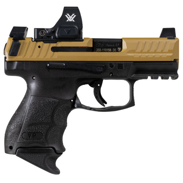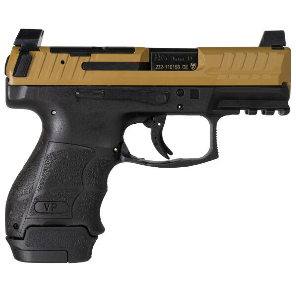The eagerly anticipated subcompact model of the acclaimed Heckler & Koch VP Series handgun, VP9SK has all of the sought-after characteristics of larger frame VP pistols but in a more concealable design. The highly-rated HK VP precision strike trigger is also found on the VPSK. It has a short, light take-up with a solid, single action type break followed by a short positive reset. The net result is trigger quality unmatched in production striker fired pistols. A small-scale interpretation of the completely adjustable VP grip feature consisting of interchangeable backstraps and lateral grip panels is replicated in the compact grip frame of the VP9SK. Molded finger grooves in the front of the pistol’s grip also instinctively position an operators hand for optimal shooting. All controls are completely ambidextrous. Slide releases are present on both sides of the frame and the paddle style magazine release can be easily activated by left- or right-handed shooters. The charging supports are simple components that are mounted on each side of the rear of the slide and provide better gripping leverage for racking the slide rearward. The charging supports speed reloading and make operating the VP easier for shooters with reduced hand strength. VPSK pistols have an abbreviated Picatinny MIL-STD-1913 rail molded into their polymer frame for mounting lights and accessories. HK’s famous cold hammer forged barrel made from cannon grade steel ensures a long service life. The VPSK’s machined steel slide is protected from corrosion and wear by HKs hostile environment finish and all metal components, including springs and pins have superior metallurgy. Despite their small size, VPSK subcompacts have excellent weight and balance making them naturally pointable, easy to control, and accurate to shoot. Optics ready, HK optic mounting plates sold separately.